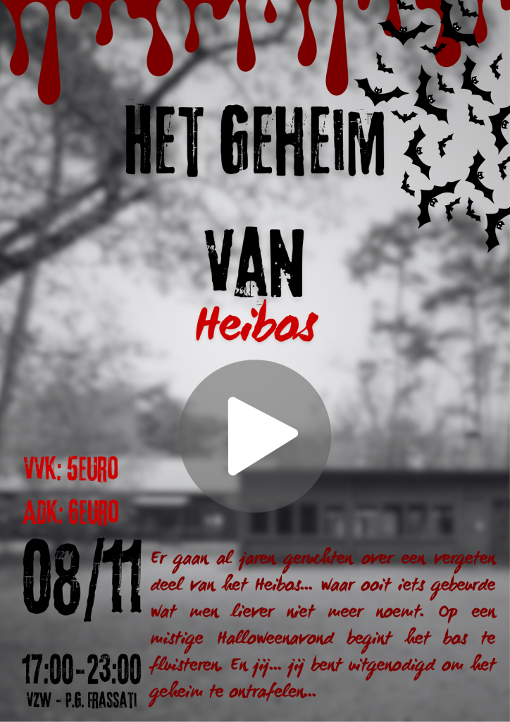 “Er gaan al jaren geruchten over een vergeten deel van het Heibos… waar ooit iets gebeurde wat men liever niet meer noemt. Op een mistige Halloweenavond begint het bos te fluisteren. En jij… jij bent uitgenodigd om het geheim te ontrafelen…”